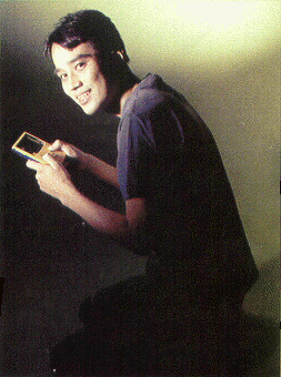 Satoshi Tajiri con una Nintendo DS Lite, seguramente en una de las oficinas de Nintendo.
